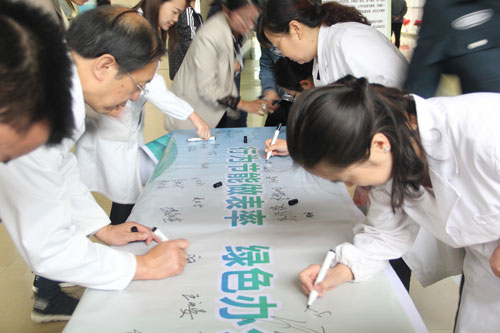 710日上午,为响应国家节能减排的号召,大力倡导勤俭节约风尚,青海盐湖所在综合楼大厅举行行为节能做表率 绿色办公我先行的倡议签名活动,所领导及职工、学生代表80余人参加了本次活动。