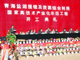 青海省副省长马培华在开工典礼上讲了话。他说,盐湖资源的开发是青海省经济发展的重要支柱产业之一,倍受青海省委省政府的高度重视和支持。青海盐湖提锂及资源综合利用国家高技术产业化示范工程是青海省和中国科学院的重点建设