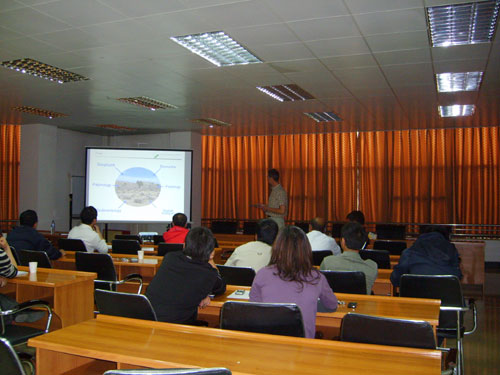 应我所赖忠平研究员的邀请,2009年5月25日至6月2日期间,德国科学家Markus Fuchs和Peter Kühn来我所访问交流。Markus在德国Bayreuth大学生态与环境研究中心从事地貌学、环境考古学和释光测年学方面的研究工作,他已在国际SCI刊物上发表了多篇学术论文,其中包括:Quaternary Science Reviews, Geomorphology,Quaternary Research,The Holocene,Boreas等。Peter现在是德国tüebingen大学地理和自然地理研究所主任,他的研究领域为土壤起源、土壤微型态和土壤地理,他的研究成果在Quaternary Science Reviews, Geomorphology,Quaternary International等国际SCI期刊上发表。