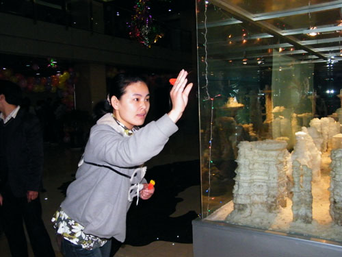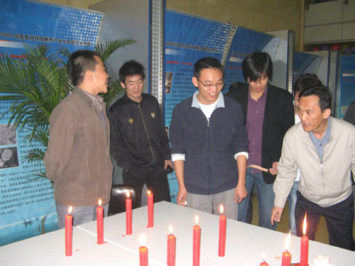 2009年9月25日星期五上午,综合实验楼一楼大厅人声鼎沸,张灯结彩,热闹异常,盐湖所全体职工、研究生在此参加庆祝建国、建院60周年趣味联谊活动。