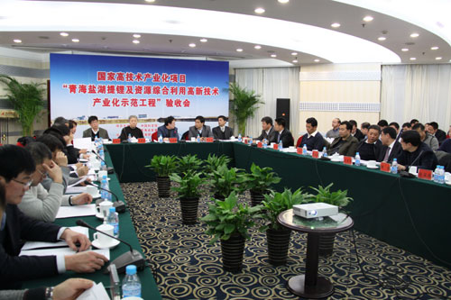 2009年12月11日,由中国科学院和青海省政府共同主持的国家高技术产业化项目“青海盐湖提锂及资源综合利用国家高技术产业化示范工程”在北京通过验收。这标志着我国高镁锂比盐湖提锂技术成功实现产业化,青海盐湖资源综合开发利用取得重要成果。多年来,中国科学院青海盐湖研究所科研人员坚持不懈、克难攻坚,以解决盐湖锂的提取和资源综合利用开发为切入点,研究开发了具有自主知识产权、适合我国高镁锂比盐湖卤水的锂盐生产工艺路线和配套的资源综合利用工艺和技术并成功实现了产业化。
