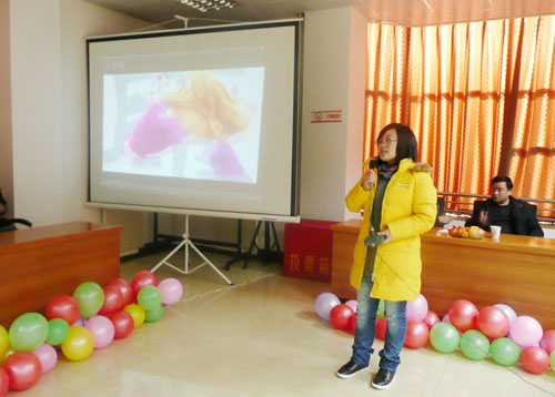 五彩的气球将会场布置的充满了温馨, 所领导、导师代表、相关部门领导和学生欢聚一堂,共度新年。庞玉娜同学演唱的一首动听的歌曲《欢乐中国年》拉开了整场联欢会的序幕,表演者和观众也渐入佳境。