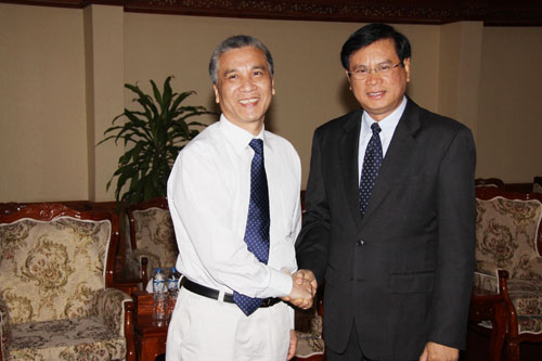在与老挝科技部会谈时,老挝科技部向丁院长一行介绍了老挝科技部的情况,双方就中国科学院与老挝科技部在老挝农业发展、生态环境保护、矿产资源勘查与开发、水资源保护与利用及科技行政管理等领域的具体合作事宜进行了磋商,并同意共建中国科学院-老挝科技部资源环境研究与示范联合中心,以此为平台集中中国科学院相关研究所的优势和研究力量,在高效生态农业、环境与生物多样性保护、矿产资源勘查和综合开发利用、水资源保护与利用,旅游业发展战略与规划等领域与老挝开展深层次多方位的合作研究和试验示范,并通过中国科学院国际人才培养项目为老挝培养资源环境研究和开发及分析测试方面的人才,推动老挝社会与经济的发展。