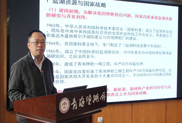 阴和俊对青海盐湖所在落实党对科技的全面领导、推进科技创新、服务国家战略和地方经济社会发展所做的贡献表示充分肯定,对一代又一代盐湖科技工作者扎根西部、艰苦创业、不忘初心、创新创业的辛勤付出表示感谢,并对研究所今后的发展提出了意见和要求。阴和俊指出,习近平总书记在2016年视察青海时就强调,盐湖是青海最重要的资源,也是全国的战略性资源,要求在保护的前提下搞好开发利用。今年3月和6月,习近平总书记两次就加快建设世界级盐湖产业基地做出重要指示。这就为我们盐湖科技事业的发展指明了方向,作为盐湖科技发展的主力军,青海盐湖所要充分发挥国家队、桥头堡作用,心系“国家事”,肩扛“国家责”,深入学习领会习近平总书记关于盐湖科技创新的重要论述和对中科院的重要指示批示精神,恪守国家战略科技力量的使命定位,认真落实党中央重大决策和院党组部署要求,聚焦主责主业,突出特色优势,面向盐湖科技主战场,坚持需求导向和问题导向,以解决盐湖资源保护和综合利用的重大科技问题为主攻方向,长远谋划、组织和引导科研人员瞄准国家战略需求干事创业,加快推进基础研究、原始创新和关键核心技术攻关,集中力量解决“卡脖子”技术难题,为“十四五”规划的实施和建设世界级盐湖产业基地提供有力科技支撑。