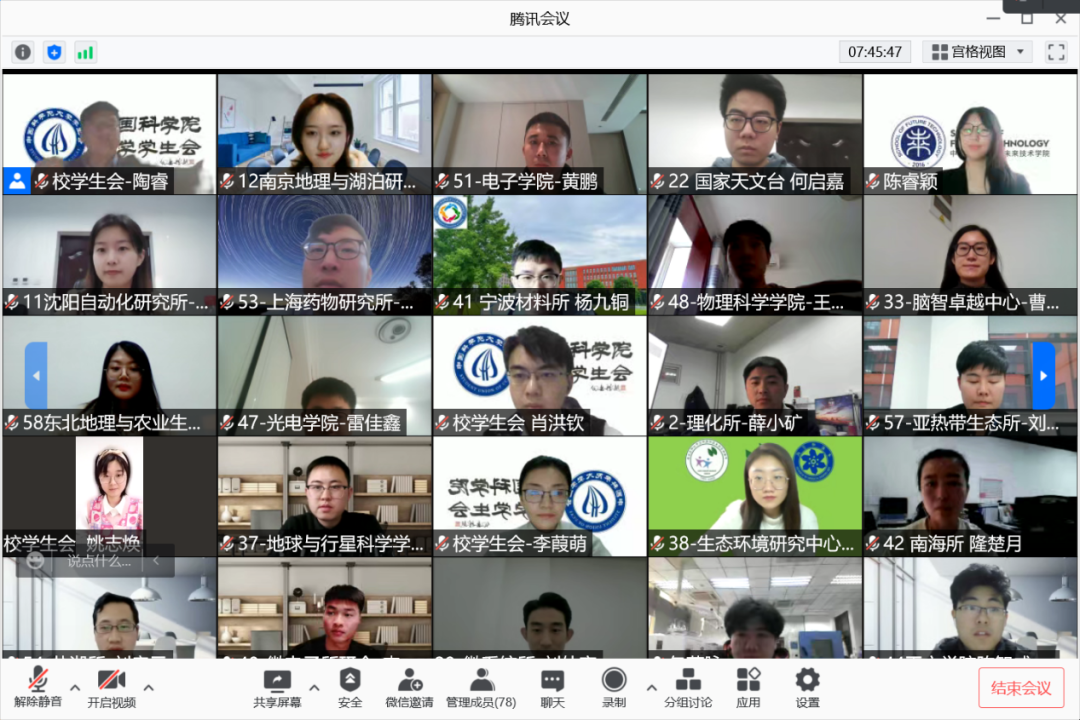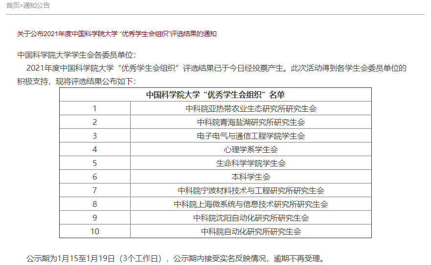 1月15日,中国科学院大学学生会对137个委员单位的学生会工作情况开展了2021年度各委员单位的述职评议工作,校团委,校学生会以及相关研究所研究生会负责人参加了本次会议。